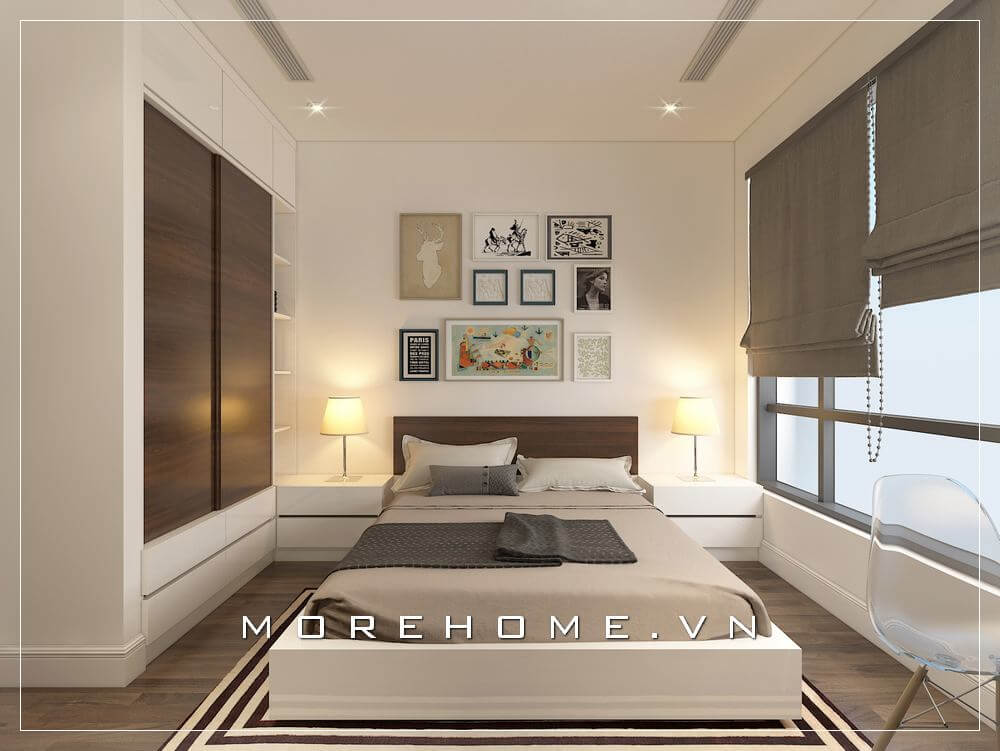 Tủ quần áo phòng ngủ chung cư hiện đại đầy ấn tượng, kết hợp kệ tủ trang trí vô cùng tiện dụng