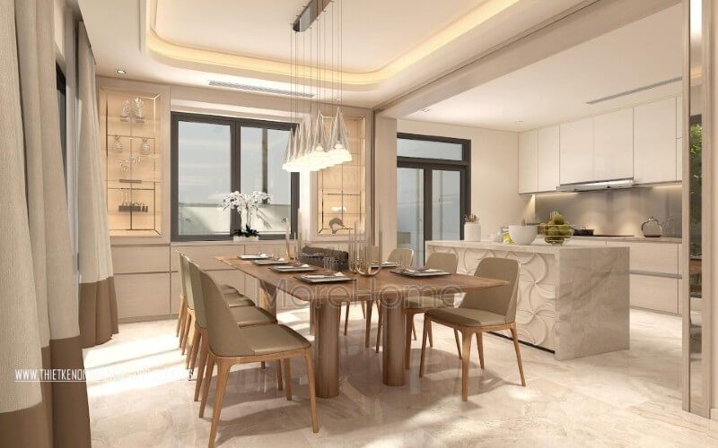 Thiết kế phòng ăn biệt thự cao cấp với nội thất bán cổ điển không quá cầu kỳ nhưng vẫn đảm bảo sự sang trọng cho căn phòng