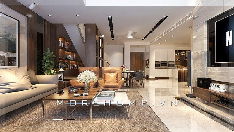 Đẹp, sang trọng và tiện nghi là những phản hồi tích cực đến từ phía người tiêu dùng với mẫu thiết kế phòng khách chung cư hiện đại ấn tượng của Morehome.