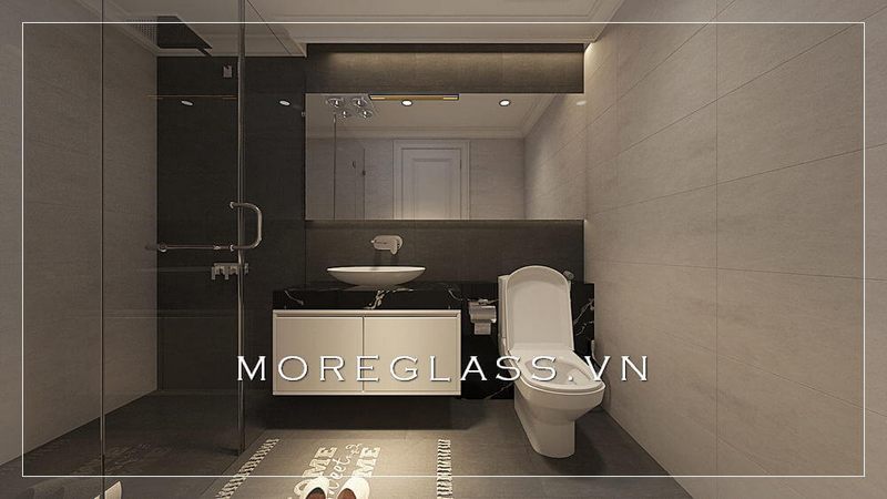 Mẫu thiết kế nội thất phòng vệ sinh kết hợp phòng tắm kính cao cấp với gam màu trắng đen sang trọng, đẳng cấp