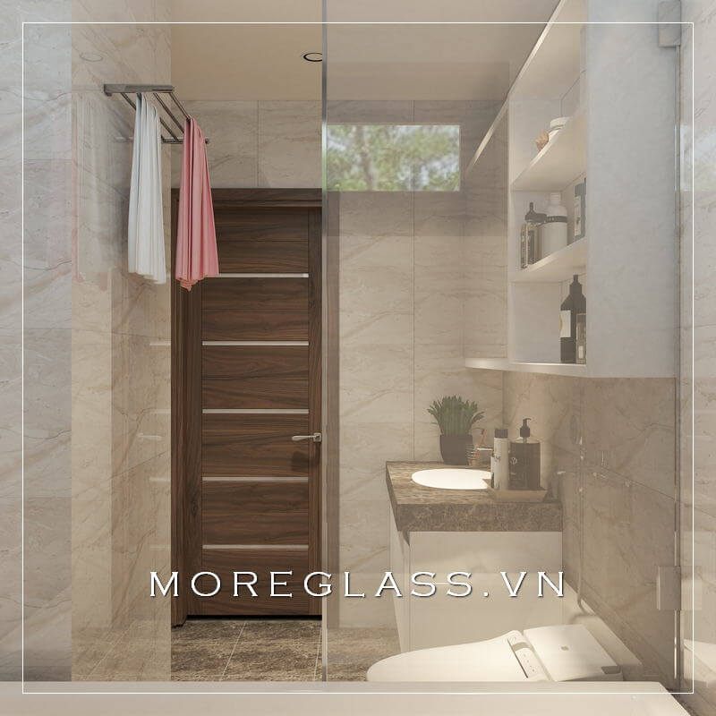 Mẫu cửa gỗ phòng tắm hiện đại với kiểu dáng đơn giản, thanh mảnh