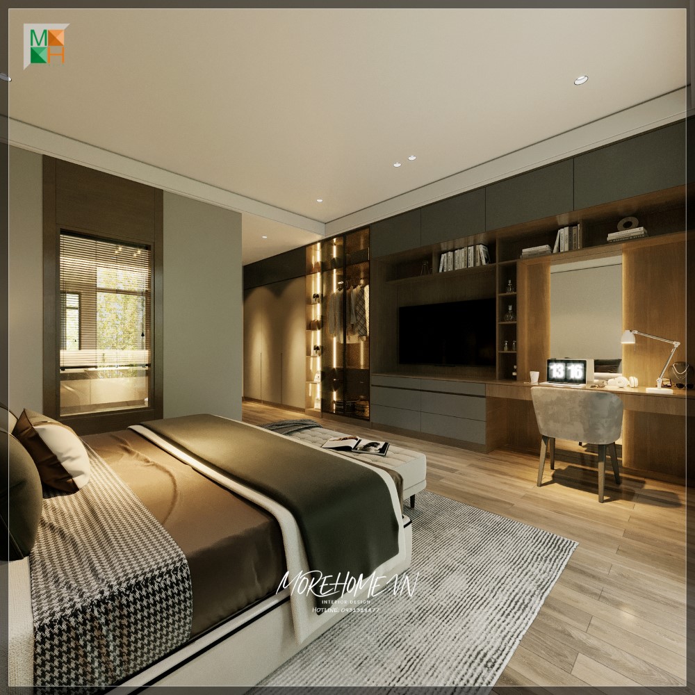 Thiết kế phòng ngủ có bàn làm việc hiện đại không gian tiện nghi trong sử dụng hằng ngày không gian riêng thể hiện cá tính, gu thẩm mỹ của gia chủ