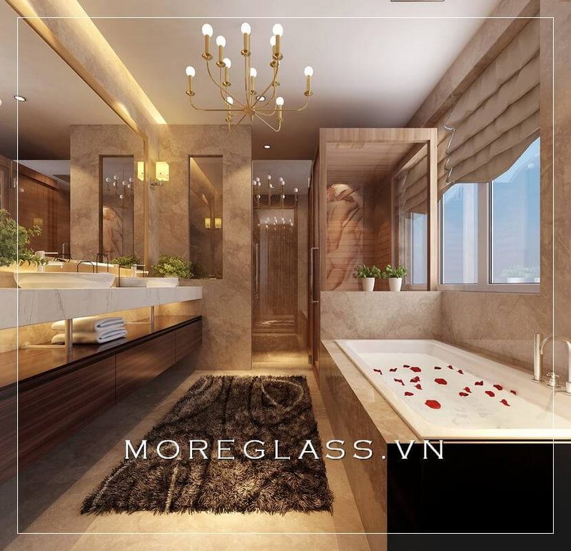 Sử dụng nội thất chủ yếu là kính, không gian nhà tắm sẽ trở nên sang trọng hơn và cảm giác thoáng đãng sẽ được tạo ra, giúp không gian phòng tắm trở nên rộng rãi hơn.